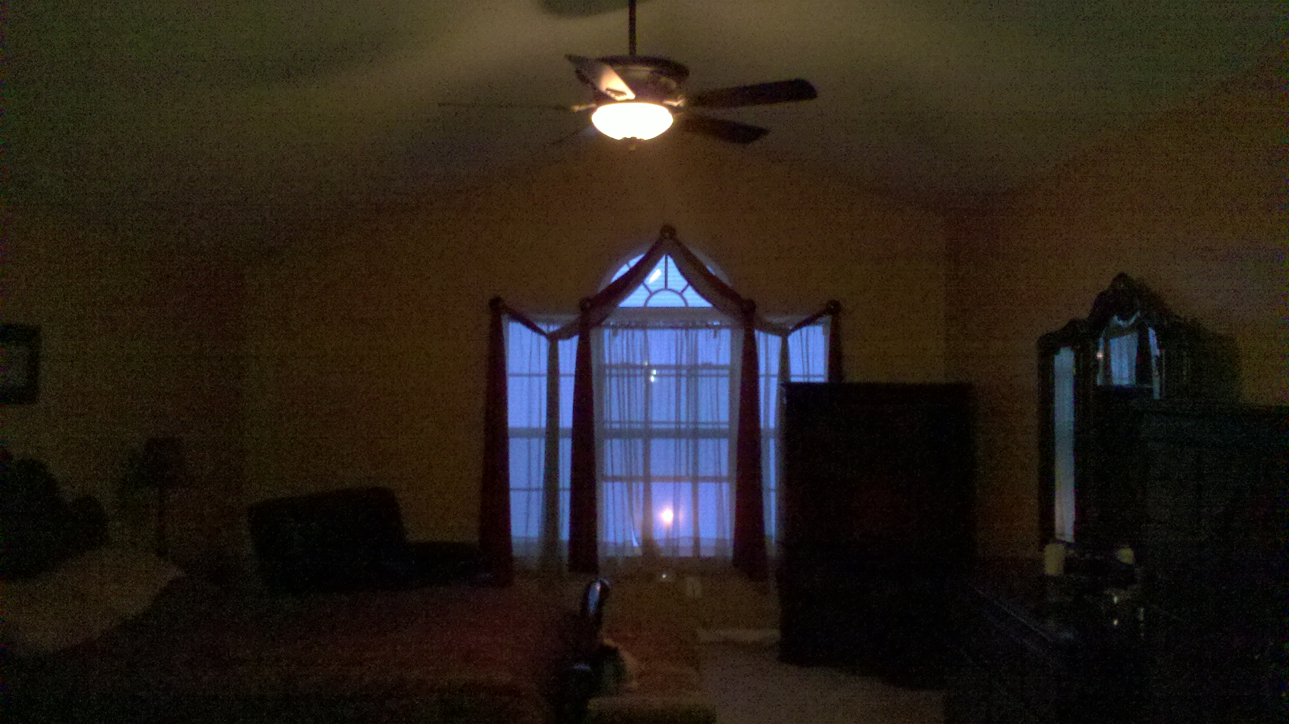 in the picture above, there’s a light on the ceiling fan.  in the six years that i’ve lived here, i’d guess that about three times a month i’ll come home and find that light on.  it’s rather interesting that two different lights are being turned on…somehow.
