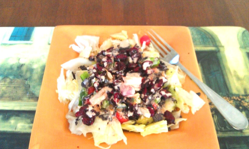 One of the positives of being surrounded by farms is that fresh, locally-grown vegetables are only a bike ride away.  Another positive is that I get to have summer salads every day.  For me, a summer salad is really a salad I can have most any time of year, except the rest of the year I have to drive to get my vegetables.