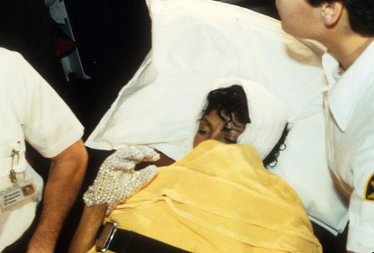 we’ve all seen the pictures of michael jackson on a stretcher with his head bandaged following what seemed like a horrible burn accident while filming a pepsi commercial back in 1984. why is it that i’m the only one smart enough to see that it was all a hoax? here’s my proof: