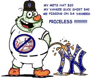 The part that I can’t understand is why there seems to be this illogical logic that if you love one New York team, then you must hate the other.  On WFAN, New York’s real sports radio (because Espn Radio  doesn’t yet have a feel for the city), the callers are going to clap for their team while bashing on the other.  You’re not likely to hear “you suck” any more often than during interleague play.  What I don’t understand is why we are supposed to hate those who should be considered our brothers.  Why must callers on the WFAN praise the Yankees and then trash the Mets?  Why the reverse?  As a Yankee fan, I consider the Mets my brothers.  I recently told someone that I hope the Mets win every game they play throughout the whole season – except the six games they play against the Yankees.  When both teams are playing well, the city is alive with baseball talk.  It’s quite boring when one team stinks and the other is covered with roses.