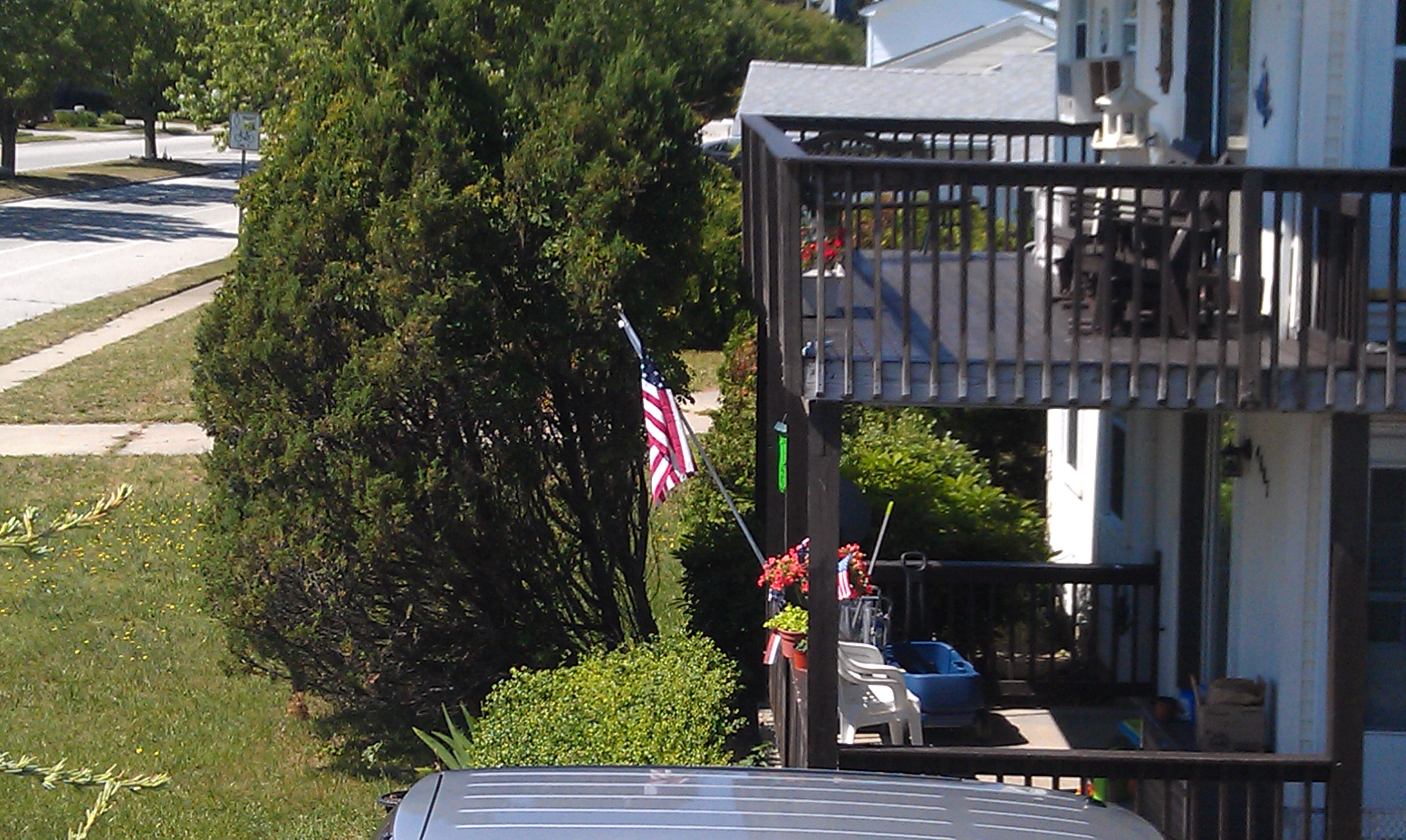 This is the place next door, where Jimmy lives.  Jimmy has a flag.  His flag tells me if it’s okay to go to the beach.  Lemme explain.