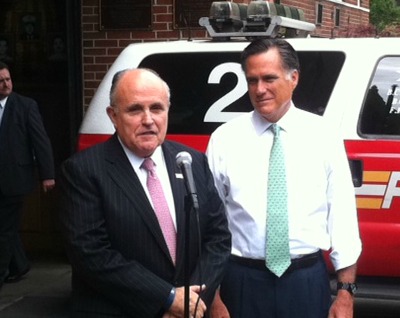 In a completely inappropriate display of politicizing and event, Mitt Romney pretended to be a regular guy by carrying a few pizzas into a firehouse while shamelessly appearing with Mayor Giuliani in order to politicize the 11th anniversary of 9/11 and criticizing Pres. Obama for politicizing the assassination of Osama Bin Laden. Mayor Giuliani, whose failed 2008 presidential bid was based entirely on politicizing 9/11, was the perfect person for Romney to appear with while politicizing a world event and simultaneously criticizing someone for politicizing a world event.