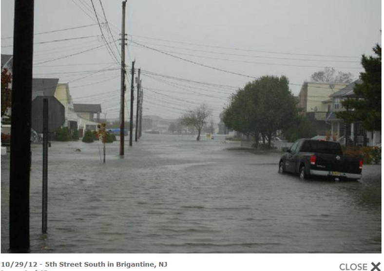 So now, being shut out of going home, I have to wonder.  I’ve been checking Twitter, using #brigantine, and it seems everyone is tweeting about the phony shark photo that they don’t realize is phony.  On Facebook, people who evacuated are complaining that the news isn’t talking about Brigantine at all.  It might be because the news vans can’t get on the island, but I’m getting scattered pics online from the NBC news affiliate in Atlantic City, and what I’m seeing is promising.