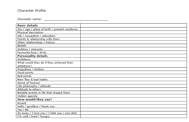 I have sat through a good handful of sessions with people who are very certain they are not only writing experts but are able to make me one as well. I have laughed each time these writing “teachers” handed me a form with boxes and lines designed to guide me into creating my character. On these forms were spaces for the exact date and city of birth, same details about immediate family, street address, nickname of the high school mascot, how many people they’ve had sex with, favorite color and movie and food, etc. Probably not the sex part, but that’s just me perverting yet another blog post, but the point is this – do you really need to know all of that information to create a good character? I don’t think so.
