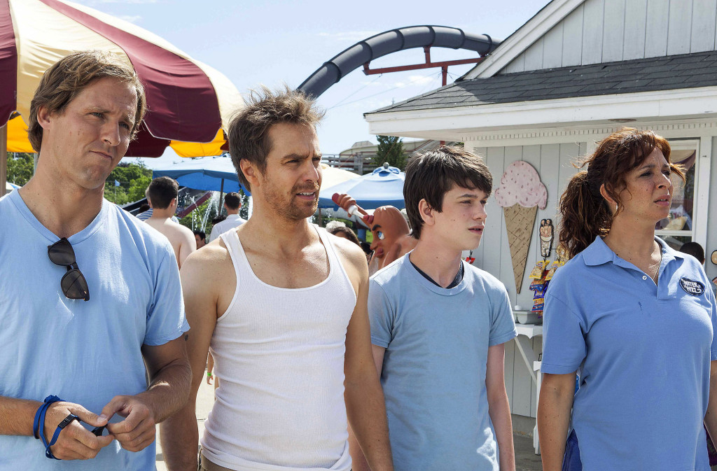 It seems everyone except Duncan has a way to cope with a long summer at the beach. Trent’s daughter Steph steals her father’s beer and hangs with snobby friends. Betty’s son plays with Star Wars action figures. The grown-ups drink around bonfires, on boats, at dinner, and most everywhere. Duncan, striving for any sense of independence or solace, does exactly what I did at his age – he goes for bike rides. This leads him to Water Wizz, a low-budget waterpark, where he meets Owen (Sam Rockwell), a wise-cracking, verbally inappropriate (but fun) guy who senses Duncan’s lack of self worth and befriends the boy.