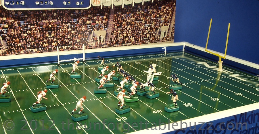 When it was time for me to join freshman football, I believed I had a head start on everyone else because I knew so friggin’ much about the game.  In addition to the Playbook, I had also logged hundreds of hours playing Monday Night Football, NFL Strategy, Mattel’s hand held Football (which I still have) and – of course – NFL Electric Football by Tudor.  These were the 70’s versions of Madden ’14 or whatever it’s called now.
