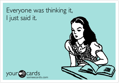 6. Someone had to say it Yes, but it did not have to be you. This line usually appears after someone has said something they perceive as edgy, something that makes them seem as if they have a unique form of brutal honesty, which, contrary to popular belief, is a form of bullying and is (yes) brutal but (no) honest. It is used by people who want you to believe you need to mind your P’s and Q’s around them because you just never know how far they will go or what might leak out of their mouths next. This is the equivalent of those who like to talk about how “crazy” they are, because if one is truly crazy, they don’t know they are crazy. And if one is truly “edgy,” then they will let the “edge” speak for itself. It’s like giving yourself a nickname, which is about as lame as you can get. I know a guy who gave himself the nickname “Rock.” This douche is the last guy in the world who deserves such a strong nickname. He’s a old fart with social issues so severe that sometimes he can’t even answer the phone for fear of having to talk to a stranger. The closest he comes to a “rock” is what’s in his head.