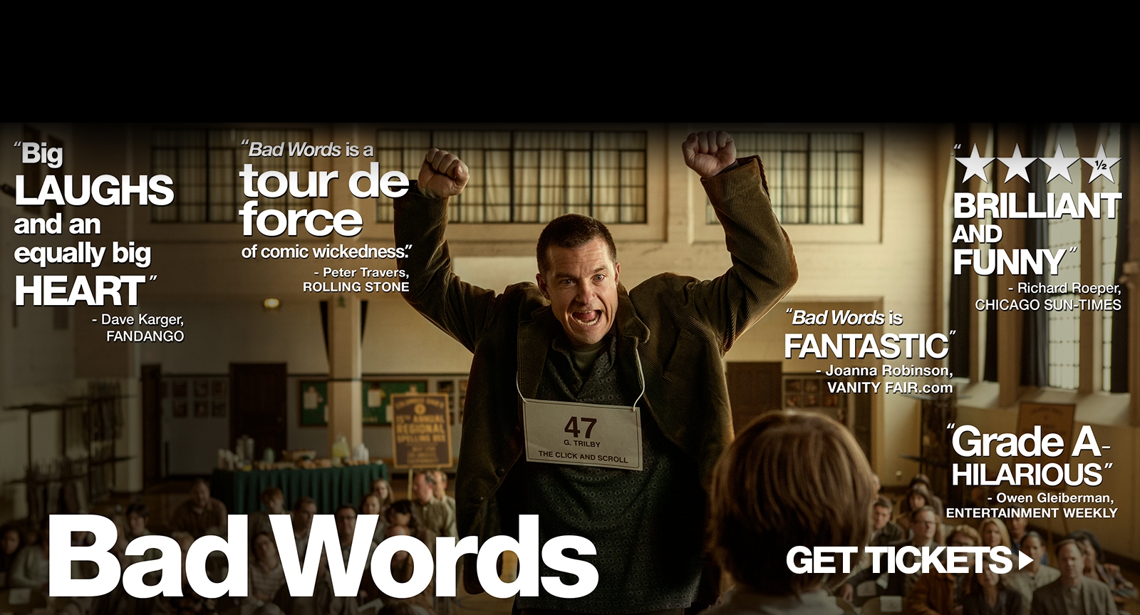 Now comes Bad Words, in which he directs himself as a self-absorbed smart-ass who exploits a loophole to worm his way into a state spelling bee. At first, it seems his goal is to recapture a lost opportunity from his youth. Later, however, we realize it is exactly that. Yeah, I meant it that way. No, I will not explain. By the way, am I wrong, or does it seem like all the best films lately are coming from Focus Features?