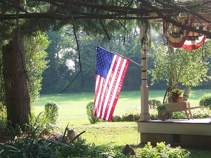 i was on my way home from home depot and saw the late afternoon sun backlighting the flag through the frame of the trees.  i spun a u-turn, then another, then got this while hoping nobody came out of the house and chased me away.