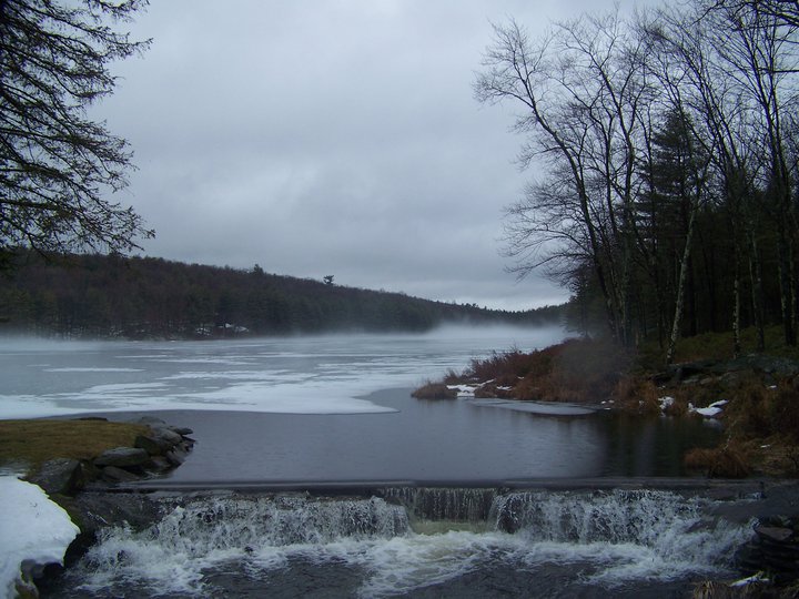 my daughter belongs to a religious group that has a yearly winter weekend retreat in upstate new york.  i went along last year, not for the relgiousness but for the scenery, and also to spend extra time with my daughter.  it had snowed heavily last year, but this particular weekend was rather warm.  the warmer air hovered over the snow and ice and made for some rather foggy conditions.